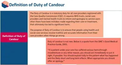 The duty of candour sets out specific requirements providers must follow when things go wrong with care and treatment.